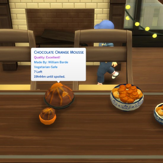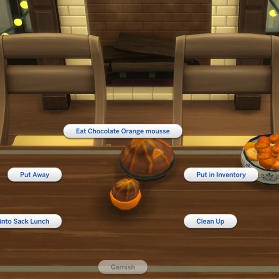 Adds a 2 custom cookable recipes to the game – Orange Chicken and Chocolate Orange Mousse. Requires Custom Food Interactions_Latestversion
