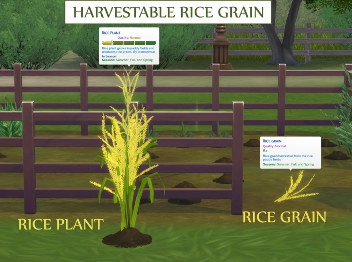 Adds harvestable rice grain and rice plant to the game