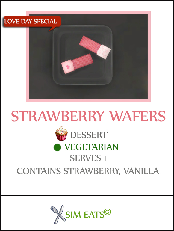 - Optional Ingredient : 1 strawberry + 1 Vanilla + 0 simoleon flat fee for Single Dish (No custom version requires 1 Strawberry ) Recipes can still be cooked if the sim does not have the required ingredients