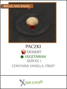 1. Hey, thank you so much for your hard work. I must say i was surprised seeing this recipe. I love eating Pączki very much. In Poland we have a special day called literary Fat Thursday when everybody eats them as well as faworki. It's really nice see a dish from your country and be able to use it in the game. Thank you so much. Greetings from Poland.