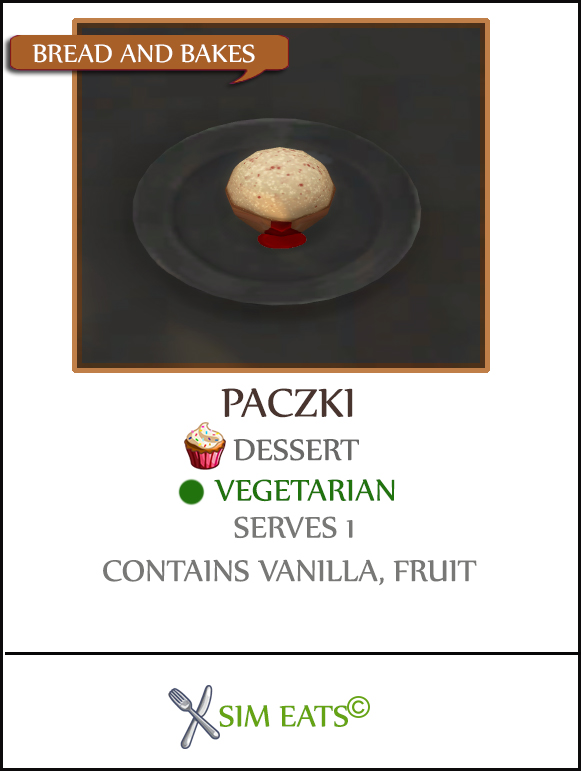 1. Hey, thank you so much for your hard work. I must say i was surprised seeing this recipe. I love eating Pączki very much. In Poland we have a special day called literary Fat Thursday when everybody eats them as well as faworki. It's really nice see a dish from your country and be able to use it in the game. Thank you so much. Greetings from Poland.