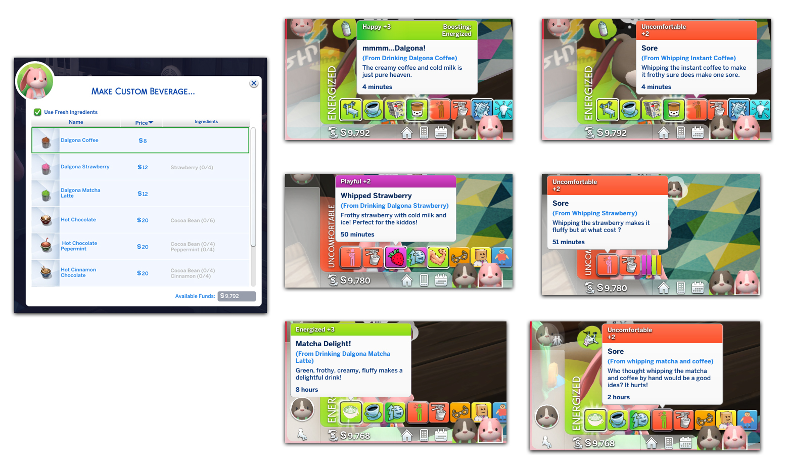 2 ) Drinking the Dalgona Strawberry will give a moodlet/buff