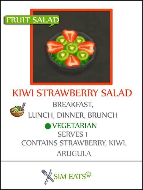 - Optional Ingredient : 1 Strawberry + 1 Kiwi + 1 Arugula + 0 simoleon flat fee for Single Dish