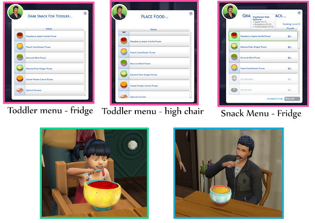 Adds 5 custom snacks and toddler puree food to the game