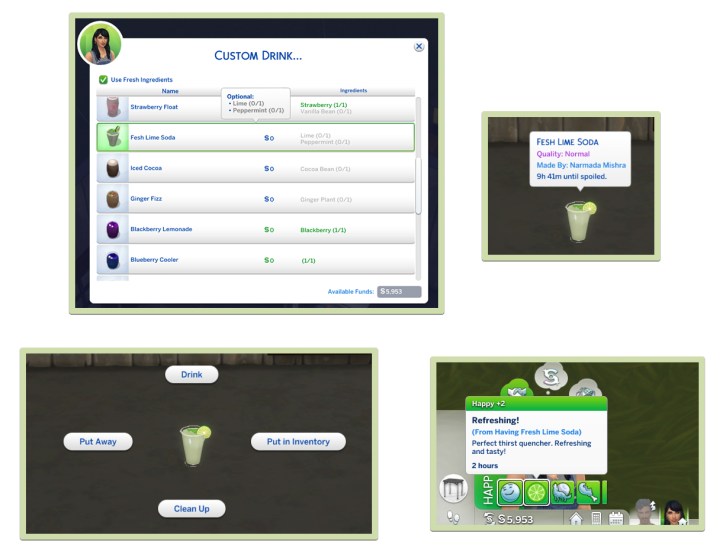 Drinking the Fresh Lime Soda will give a moodlet/buff