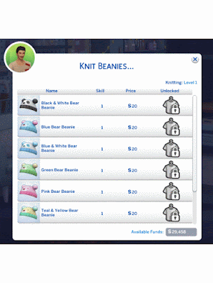 - Clothes > Beanies (8) —-Skill Level 1. Price 20 Simoleon