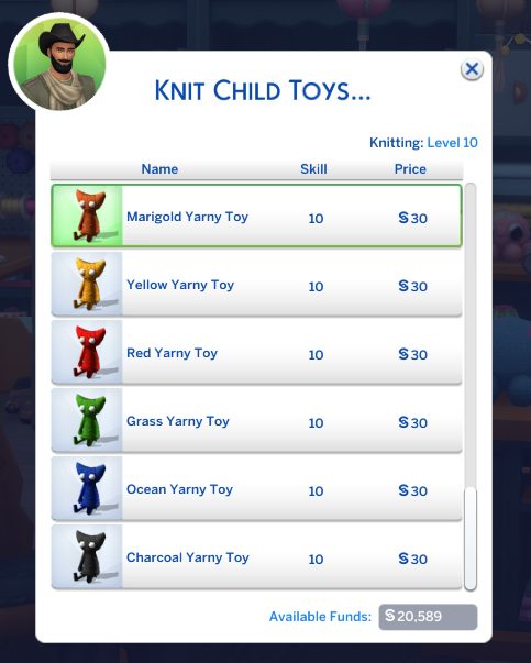Gives sims the ability to knit Yarny and The forbidden sweater