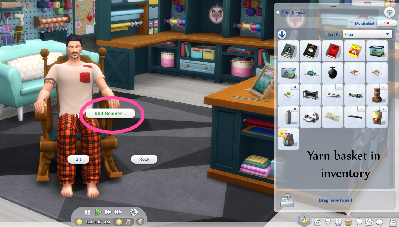 2. Put the yarn basket in the sim inventory