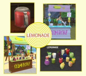 - The Swatches of the tabletop lemonade maker has to be changed manually in build buy mode. The swatch colour do not match the beverage being made