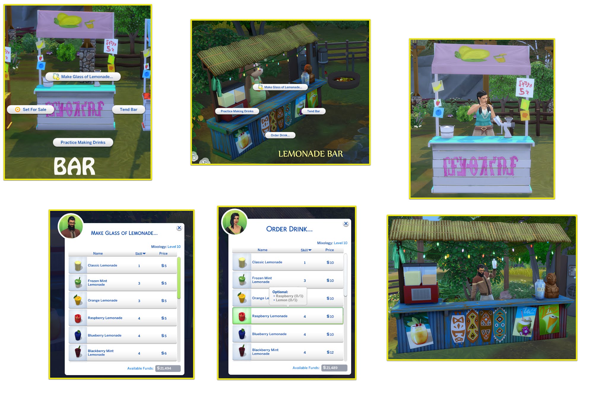 - Order Lemonade – Interaction available when another sim is tending the bar