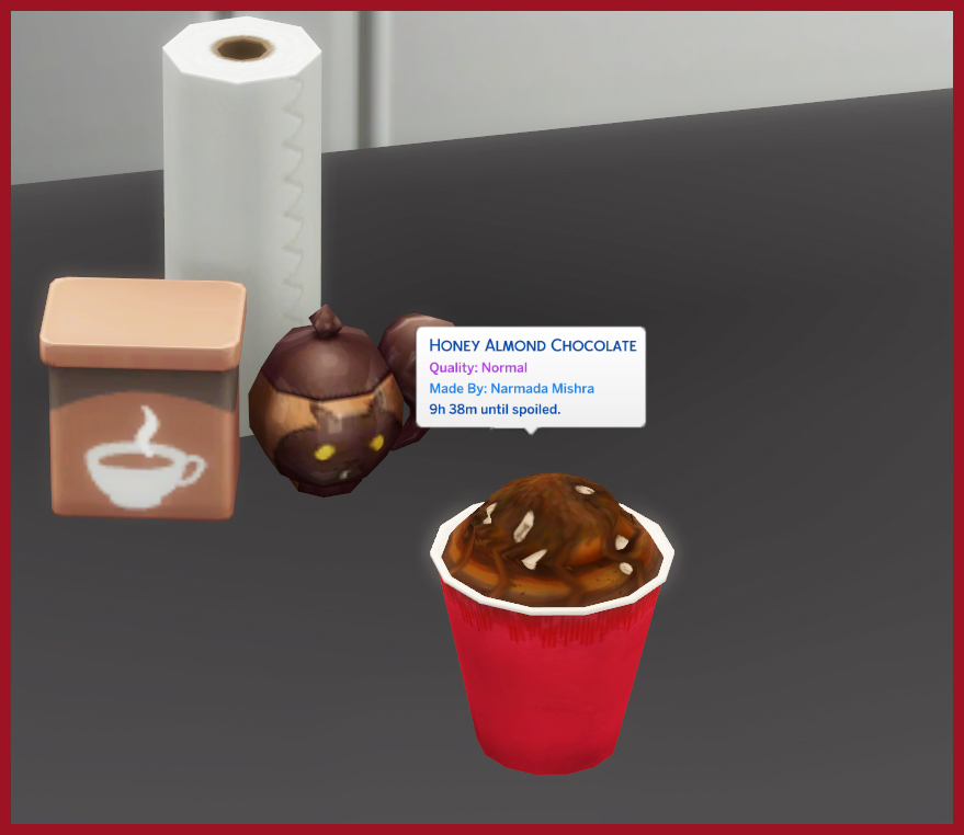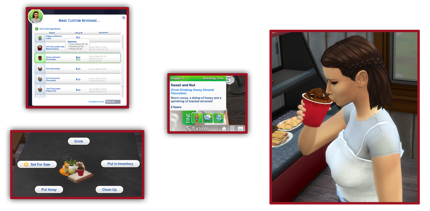 Drinking the Honey Almond Chocolate drink will give a moodlet/buff