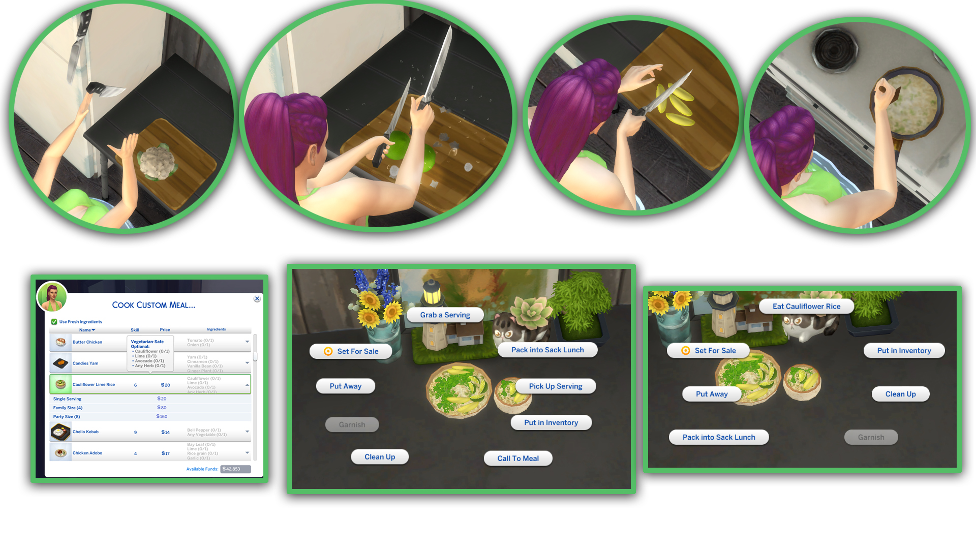 - Optional Ingredient : 1 Cauliflower + 1 Lime + 1 Avocado + 1 ANY herb 0 simoleon flat fee for Single Dish