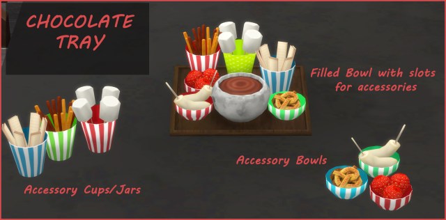 The accessories(Jar of Wafers, Bowl of Strawberry, Glass of Pretzel sticks, Bowl of Pretzel, Jar of Marshmallow on Sticks, Bowl of Bananas)isn't working properly, the animation happens but right at the end the sim is reset and there's nothing in the inventory…