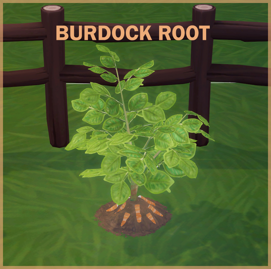 • Eating the Burdock Root harvestable raw will give a moodlet/buff