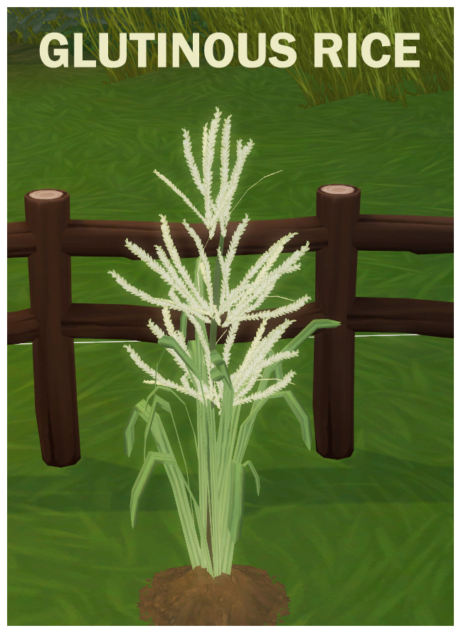 Adds harvestable glutinous rice and plant to the game. Also known as Sticky rice, Bora Saul, Mochigome.