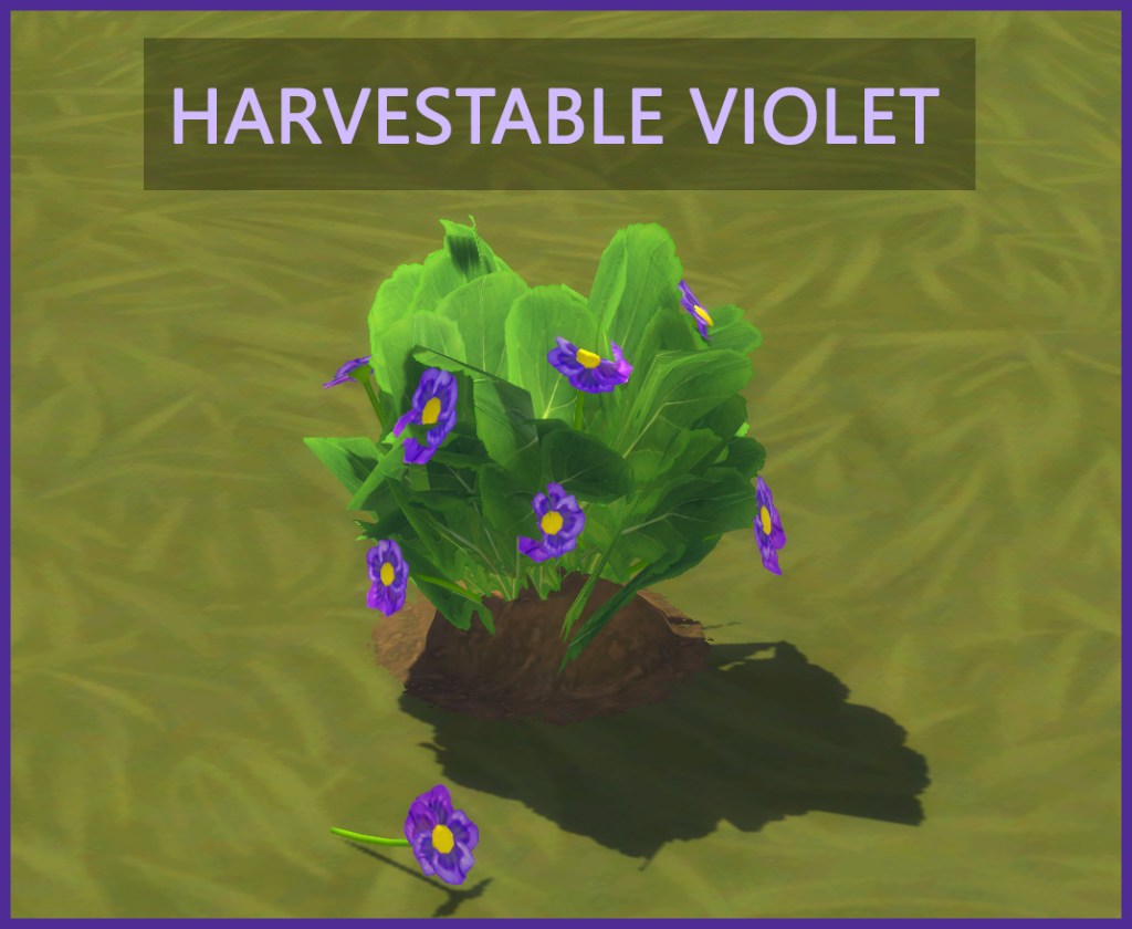 -Violet is tagged as a flower, so can be eaten raw or used in recipes which require flowers as a cooking ingredient.