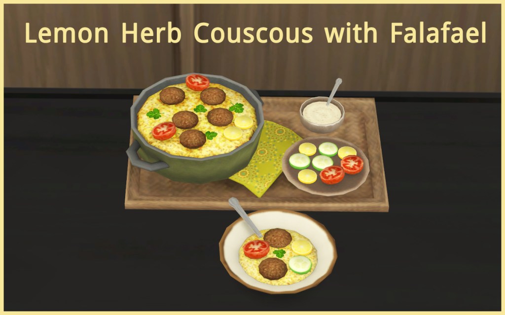 Adds a custom Homestyle recipe to the game – Lemon Herb Couscous with Falafael