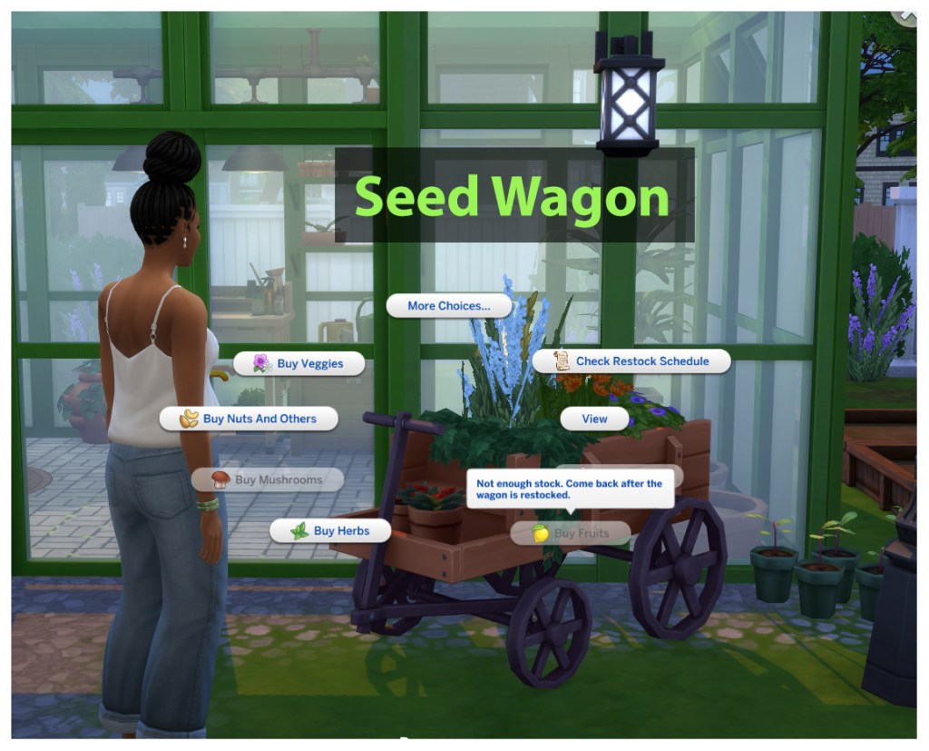 • The above interaction will open a purchase picker from where the sims will be able to buy seeds.