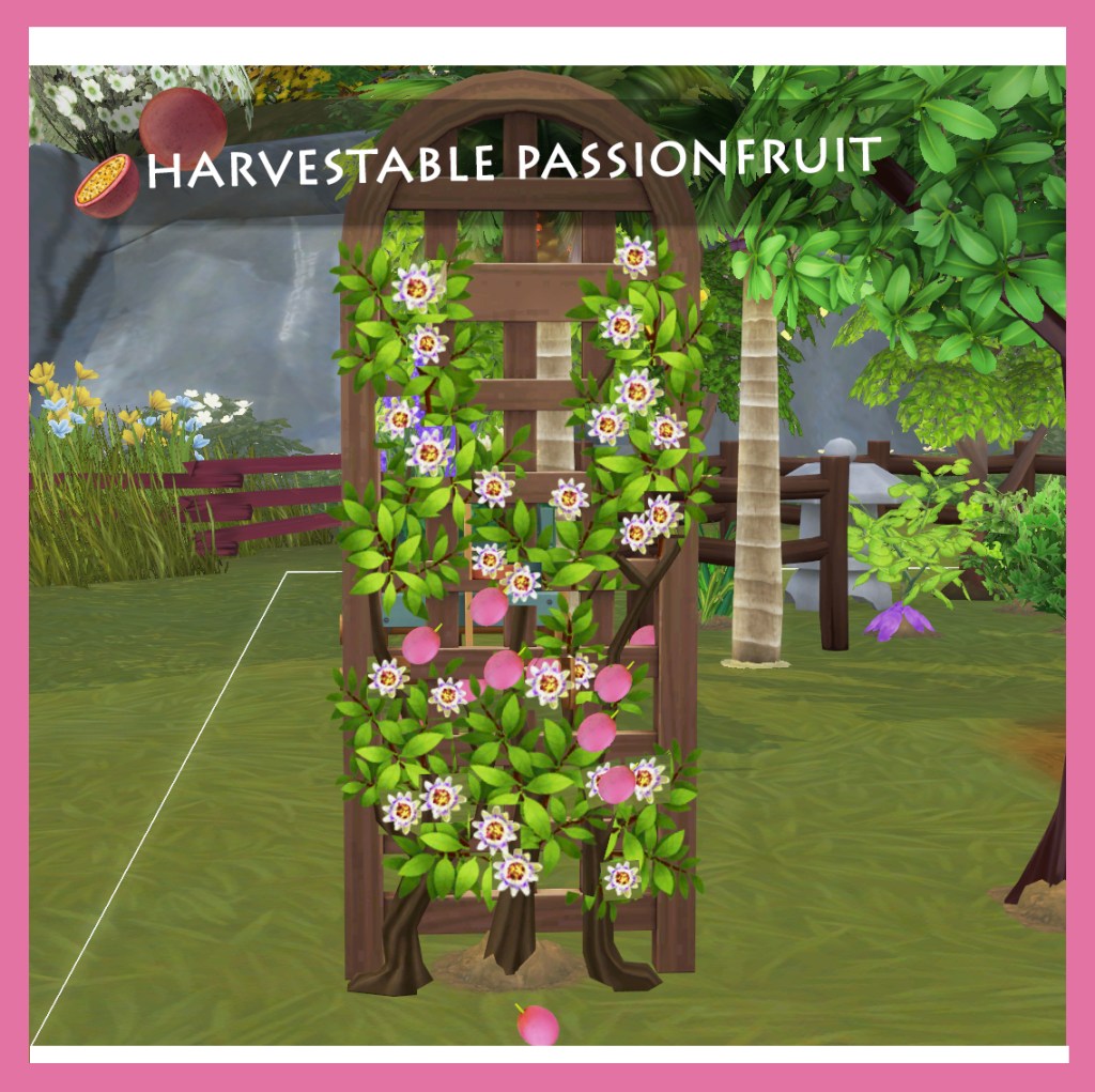 1. Eating the Passionfruit harvestable raw will give a moodlet/buff