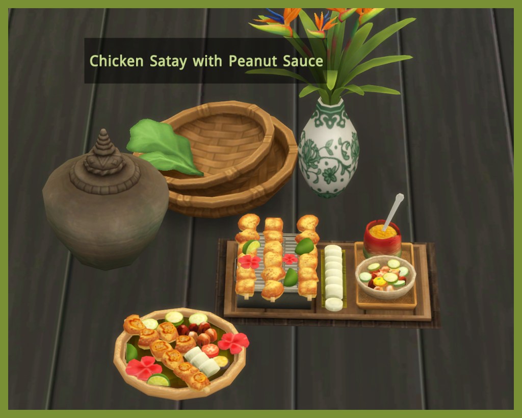 Adds a custom Homestyle Grill recipe to the game – Chicken Satay With peanut sauce and Rice Cakes