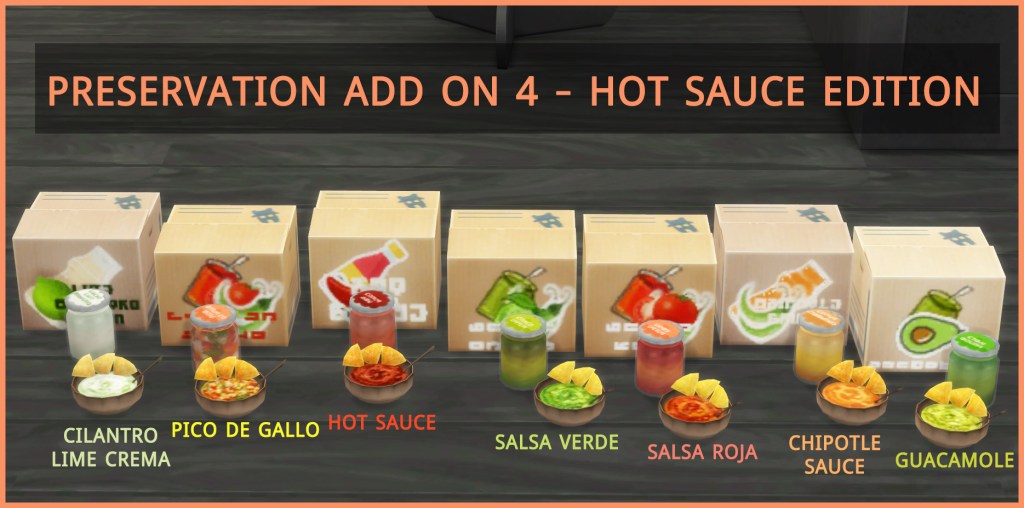 – The bowls of sauce with tortilla chips can be found under Quick meals/snacks from fridge ⇨ Requires Custom Food Interactions_Latestversion ( updated on 18.08.24)