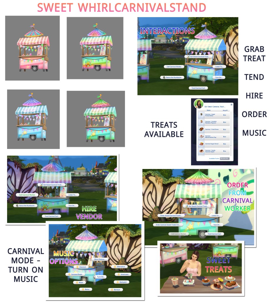 - Order Sweet carnival treats ( Available when carnival worker is tending the cart)