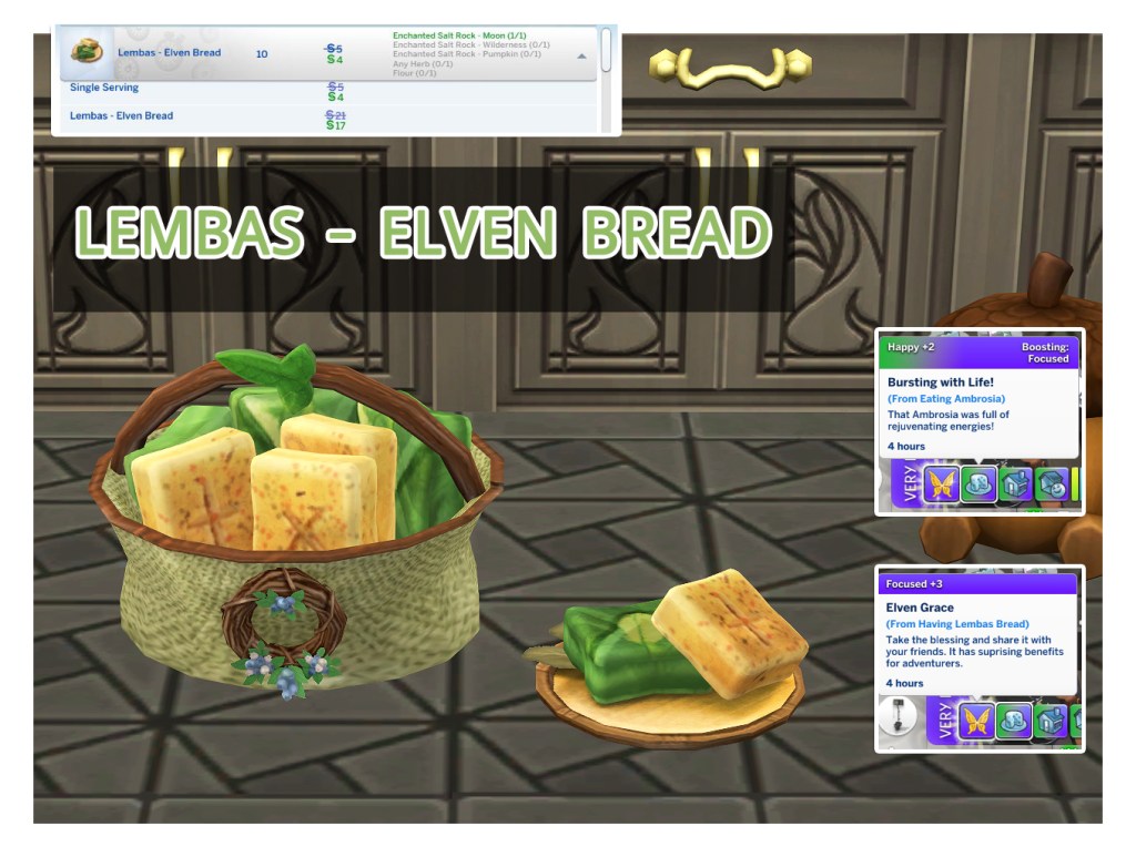 - Optional Ingredient : Herb + Flour + Moon Essence + Forest Essence + Wilderness Essence + 0 simoleon flat fee
