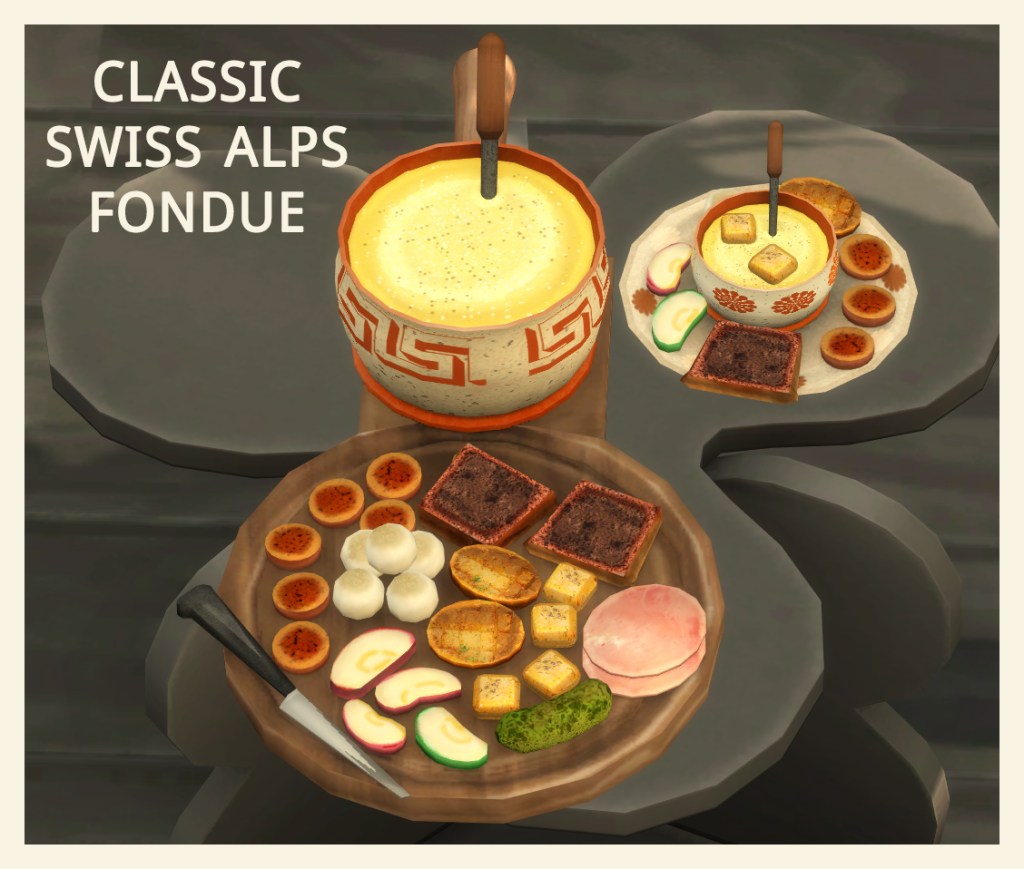 - Menu : Available from 1 ) Custom Cook Menu on Fridge, Stove, (from Custom Food Interactions) 2) Le Petit Fondu Pot